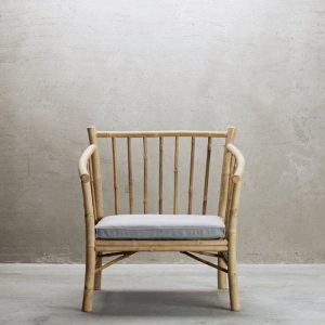 The chair’s sturdy frame is constructed from high-quality bamboo, ensuring long-lasting durability while adding a touch of nature to your space. The backrest features a detailed bamboo slat design, offering both aesthetic appeal and ergonomic support. The seat is complemented with a comfortable cushion, making it perfect for relaxed seating in any environment.