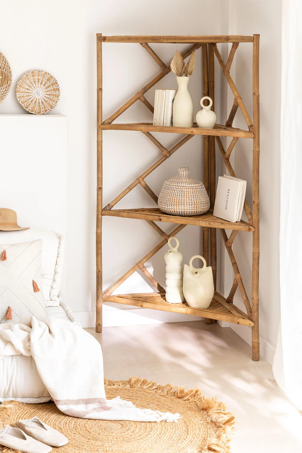 Bamboo Corner Rack crafted from 100% natural bamboo, bringing both elegance and functionality to your living space. Whether you need additional storage in your home, living room, or a stylish display for hotels, this product is the perfect choice.